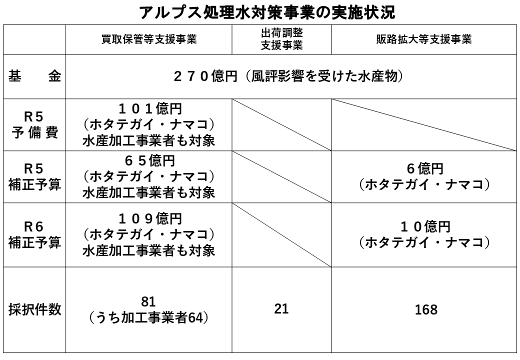 ALPS処理水の放流対策で用意された300億円基金は経済産業省の予算ということで、少しは見直しされつつはあるのですが、この予算を巡る状況は非常に厳しいということです。