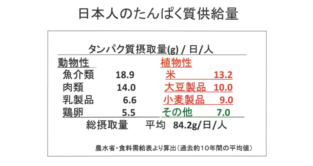 しからば、水産物が食料として重要でないかというと、そうではありません。確かにカロリーベースでは、令和4年の国内食料の総供給熱量2,260kcal/人・日のうち魚介類は78kcal/人・日ですから、重要度は低いかもしれません。ただし、タンパク質源として見れば、近年では特に高齢になるに従ってタンパク質をしっかり摂らなければいけないということがいわれていますけれども、日本人が摂取するタンパク質総量84.2g/人・日のうち魚介類は18.9g/人・日で、肉類や乳製品、大豆など他の品目の中で最も多い数値となっていますので、タンパク質源として極めて重要な食料だといえます(図29)。