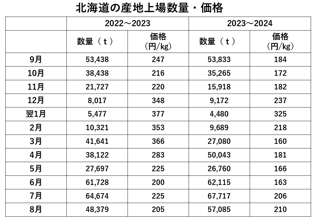 そのため、北海道での産地価格も2024年12月から高くなったという状況です(図45)。