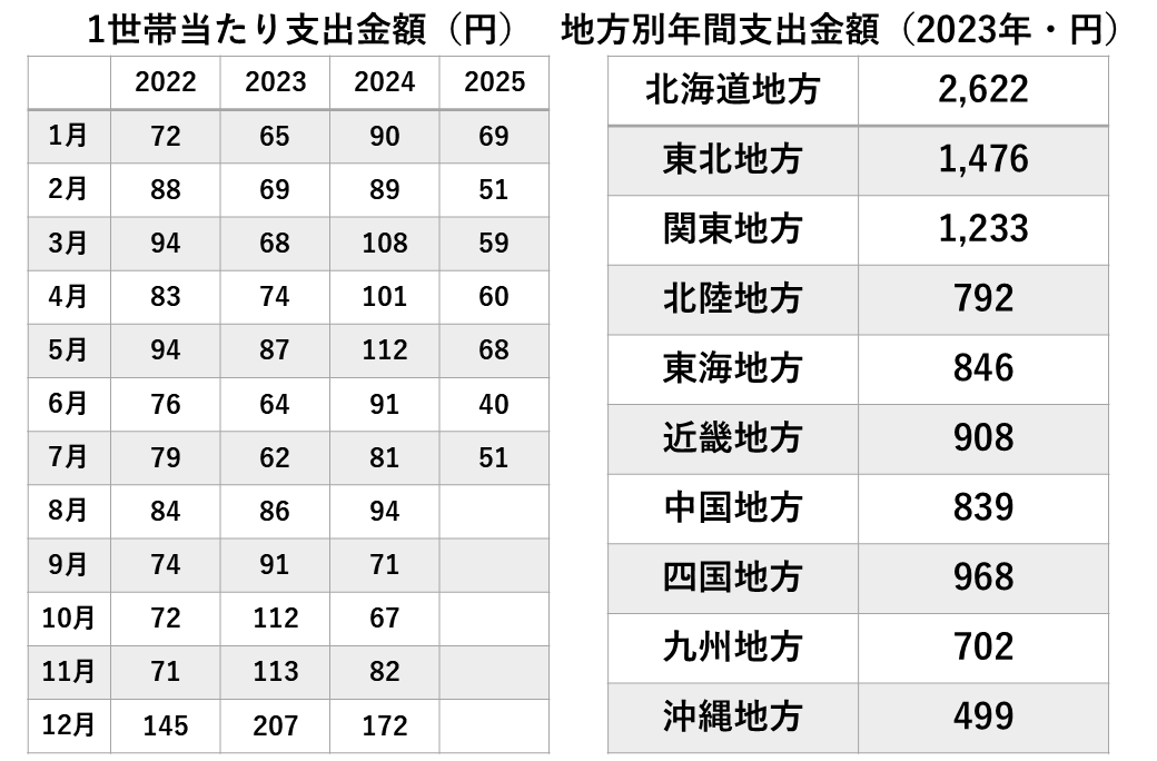 また右側の地方別の年間支出金額を見ると、明らかに関東以北に消費が偏っています。残念ながら関西や九州など西日本での消費は少なく、まだまだ国内での消費開拓の余地、課題はあるのかなと思います。